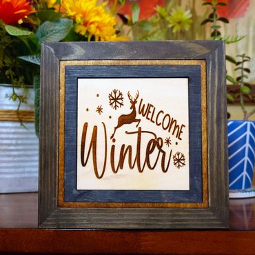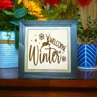 How it works? You purchase one real-wood frame in your choice of our hand-stains, and you receive four internal displays (e.g., spring, summer, fall, winter) that is interchangeable with the changing seasons in your climate.